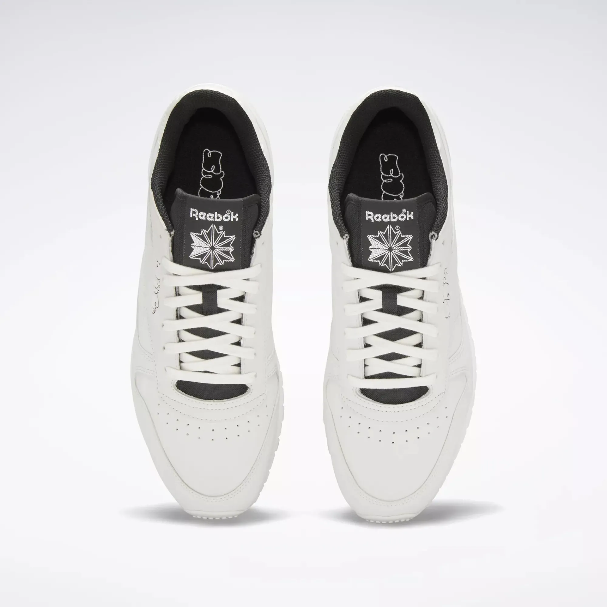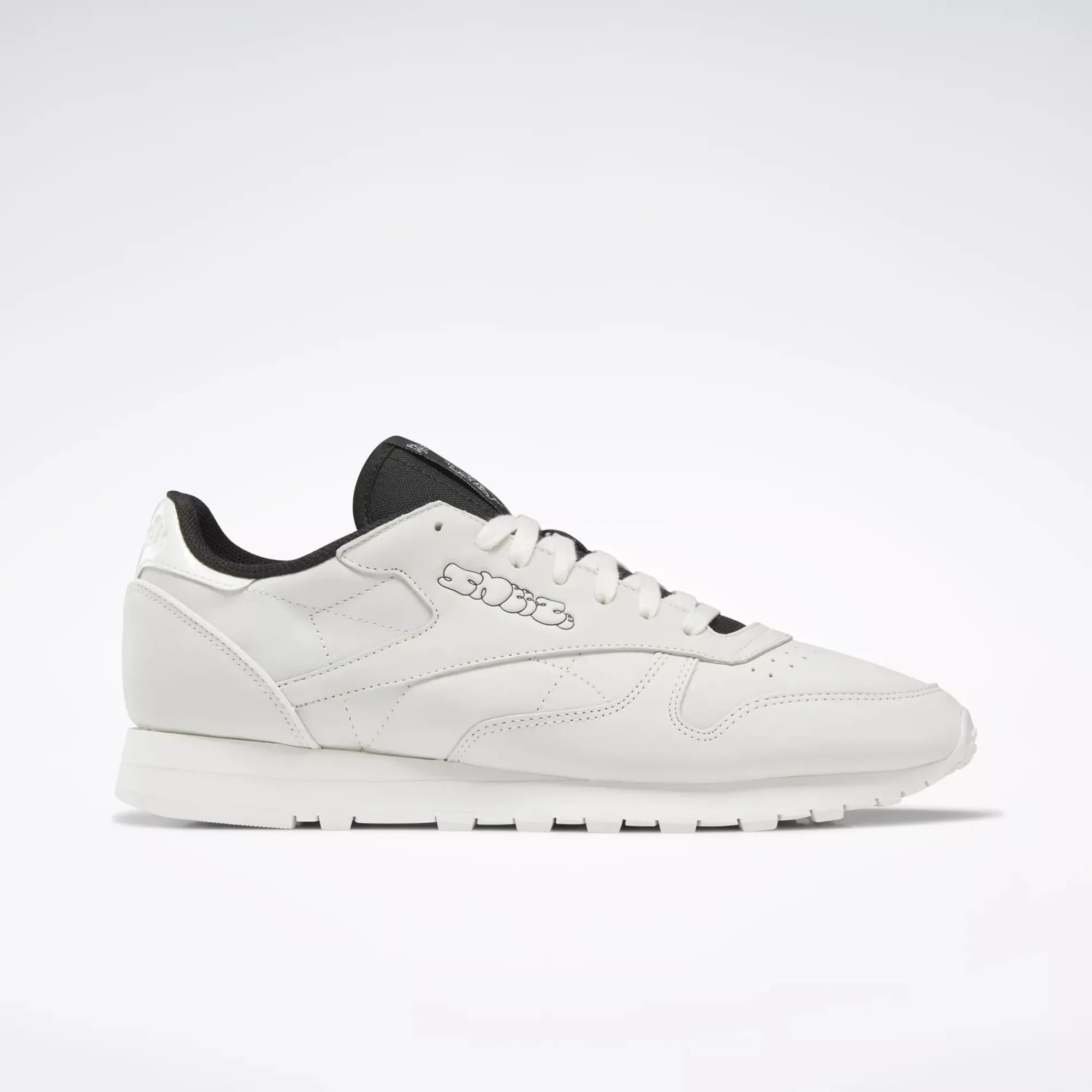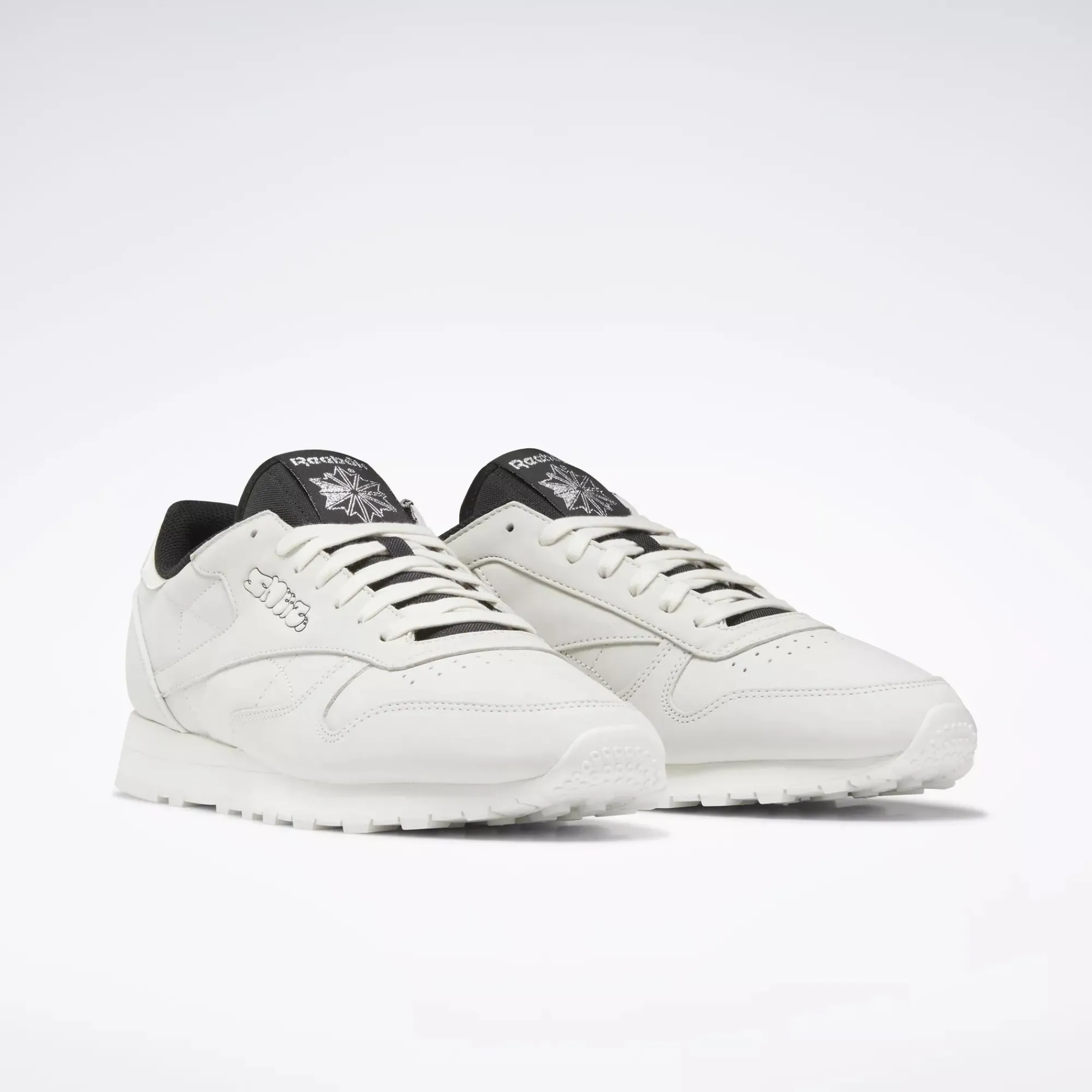 Street Art Style For The Win. A Graffiti-Inspired Design Of The Sneeze Logo Puts A Fresh Spin On These Reebok Classic Leather Shoes. The Clean, Court-Inspired Style Has A Minimalist Look. Black Pops Against The Subtle Upper Keep Things Fresh.