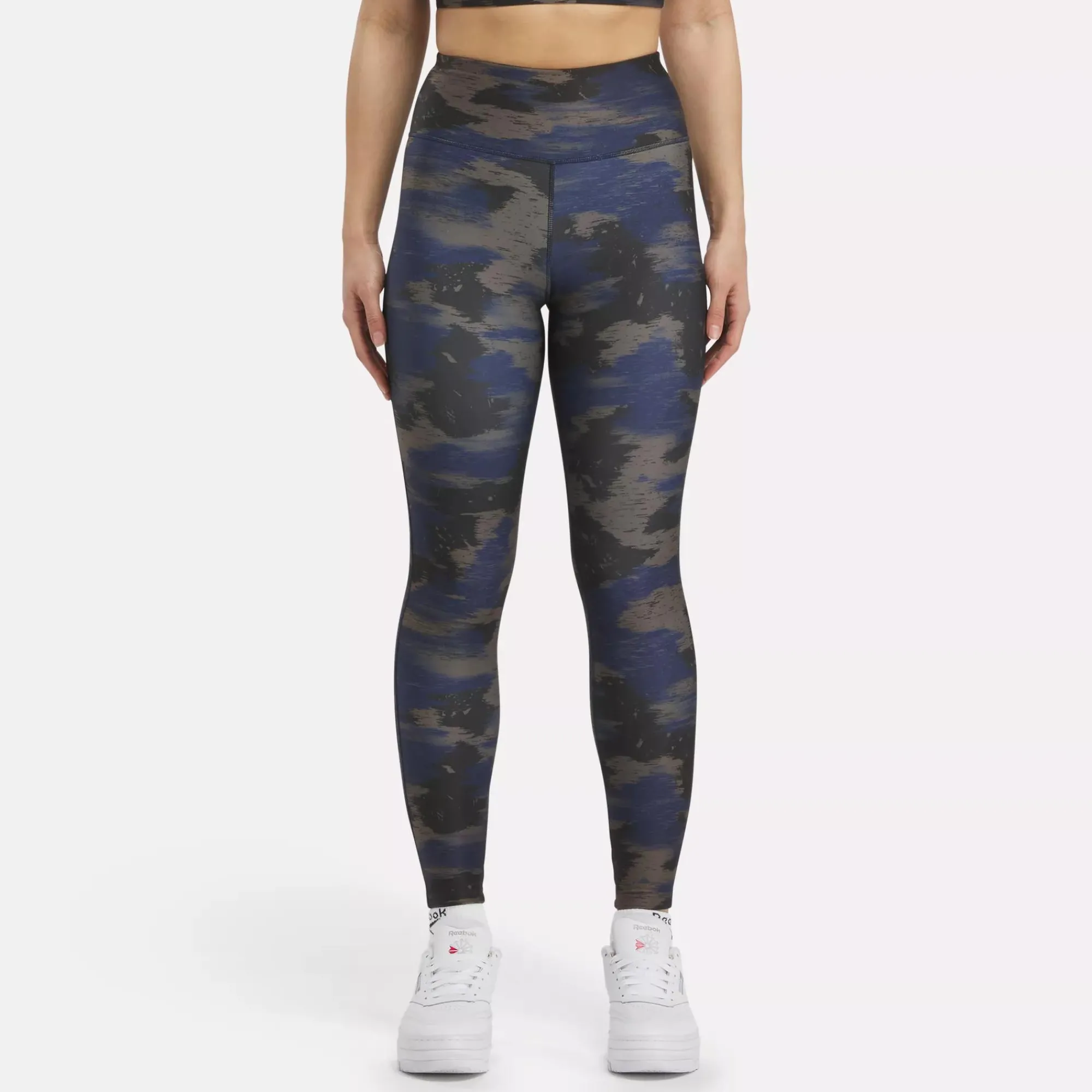 Fitness Is Built One Workout At A Time. These Women’S Reebok Training Tights Get You In The Mood To Move. Speedwick Tech Helps You Stay Dry In Spin Class Or Hiit. A Brushstroke Effect Gives The Camo Print A Distinctive, Modern Look.