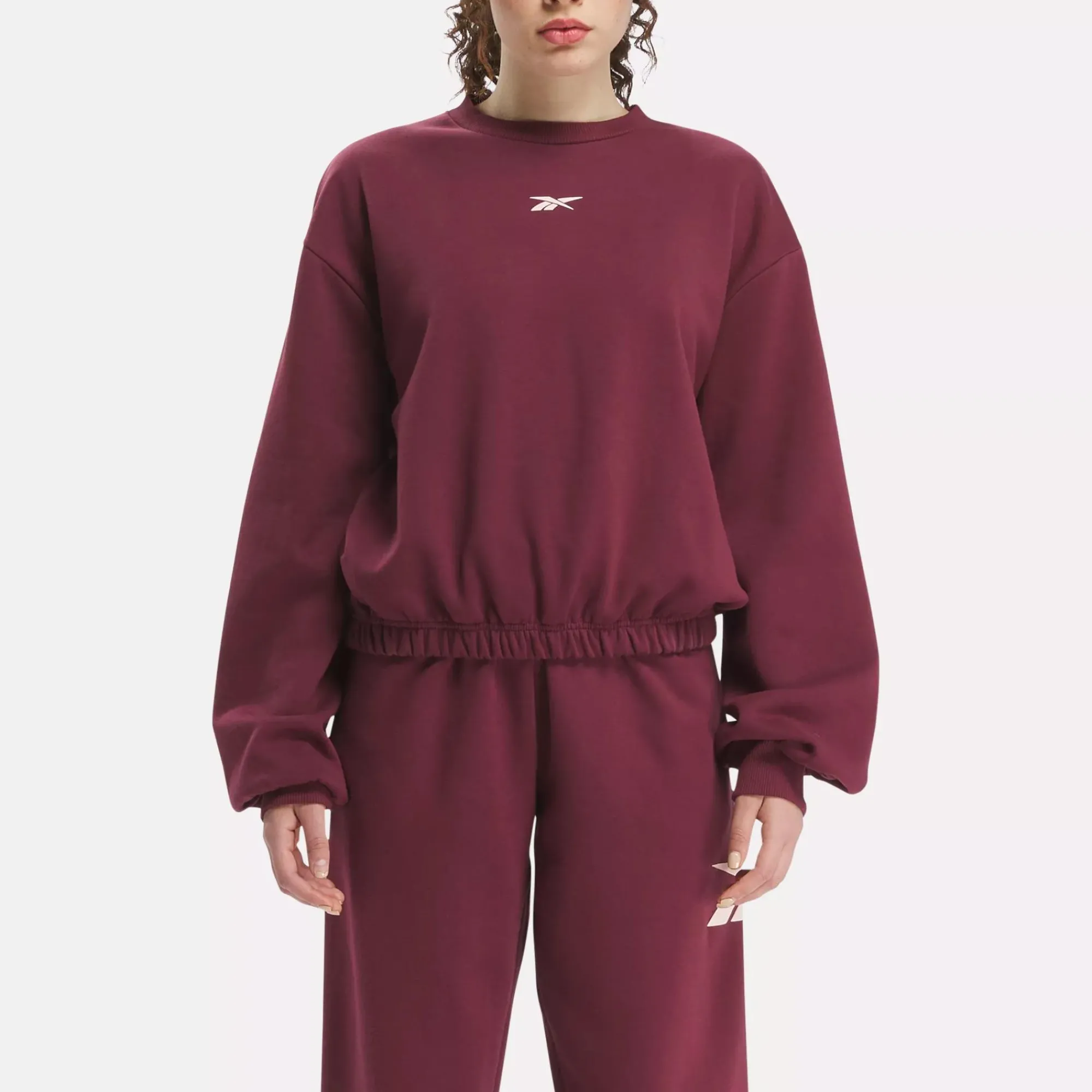 Sweats Aren’T Just For The Gym Anymore. And With This Women’S Reebok Cover-Up, You Can See Exactly Why. A Big Reebok Vector Logo Makes A Bold Statement On The Back. Soft Fleece Ensures You Stay Comfy All Day.