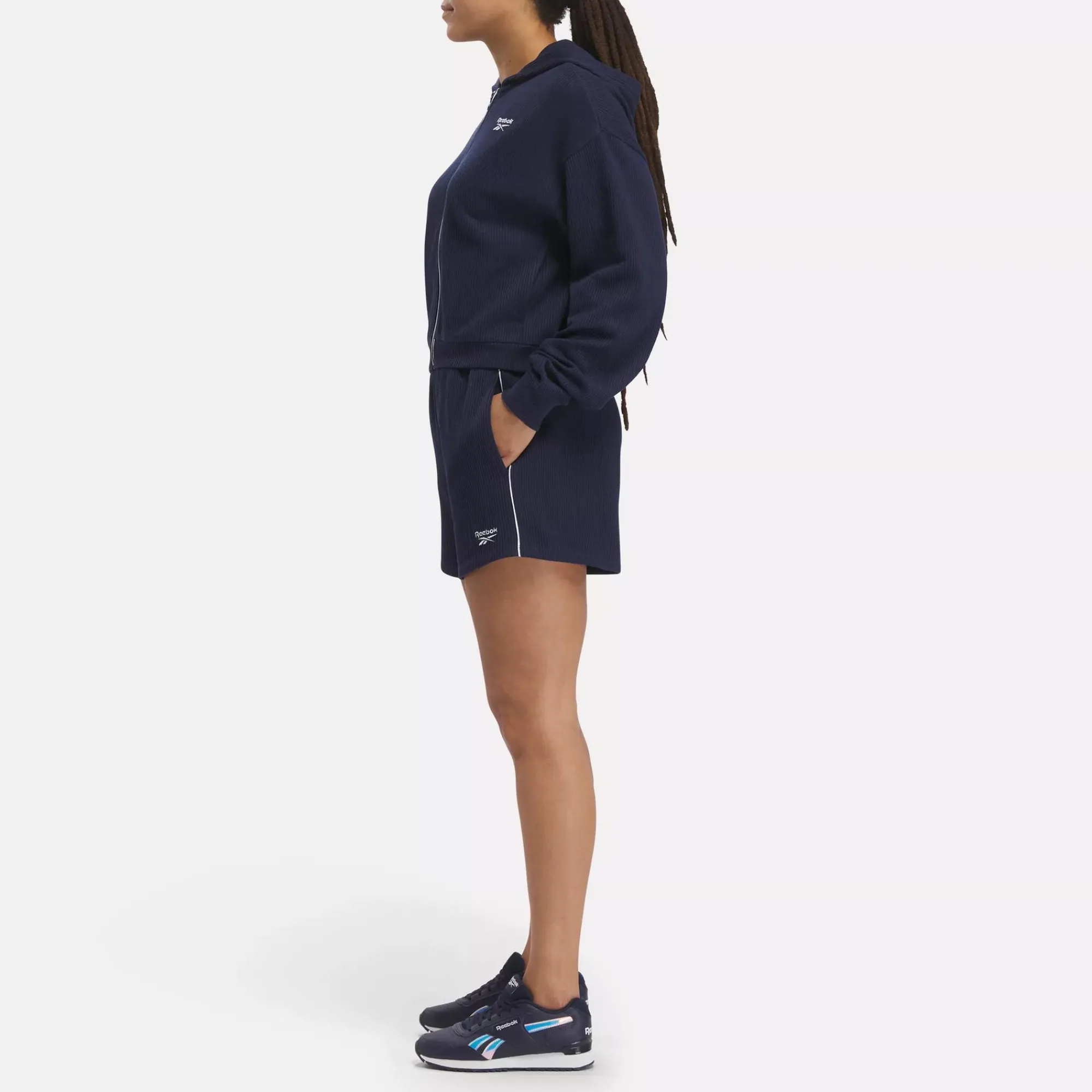 Whether You Decide To Take The Dog To The Park Or Blow It Off In Favor Of The Couch, You’Ll Be Prepared In These Women’S Reebok Shorts. Cotton-Blend Waffle Fabric Is Super-Comfy, But The Contrast Piping And Embroidered Vector Logo Keeps You Looking Sharp.