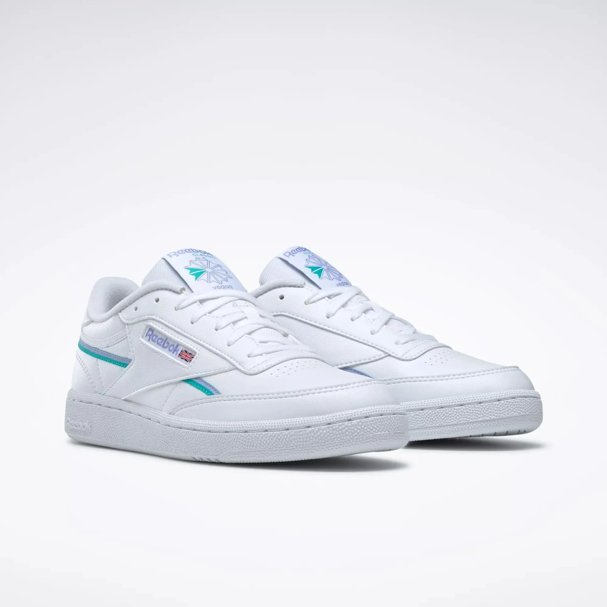 How Do You Improve An Og Classic? You Make It Vegan. These Super-Clean Club C 85 Shoes For Women Give You A Look That Pops Thanks To Brightly Colored Accents. The Signature Windowbox With A Reebok Logo And The Union Jack Have Been Fresh Since Forever. Might As Well Keep The Good Vibes Going.