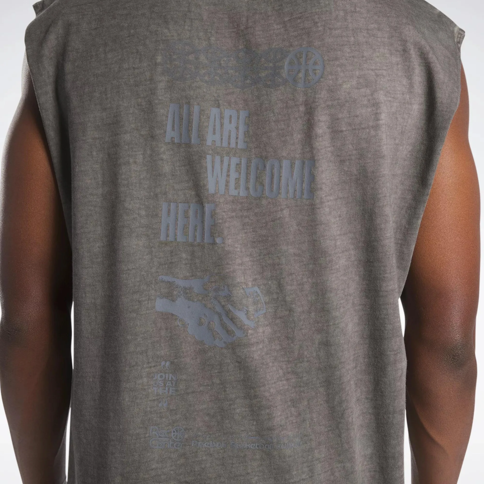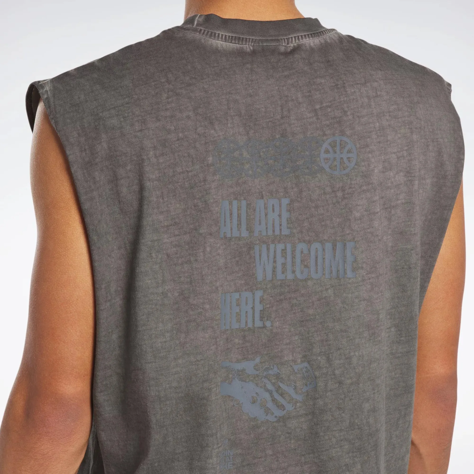 The Basketball Court Welcomes People From All Walks Of Life. This Men’S Reebok Tank Top Keeps That Spirit Alive With A Graphic That Promotes A Community Spirit. Our Bi-Dye Garment Wash Resembles Used Basketballs And Worn Rims With A Distressed Finish To Give It A True Court Feel.