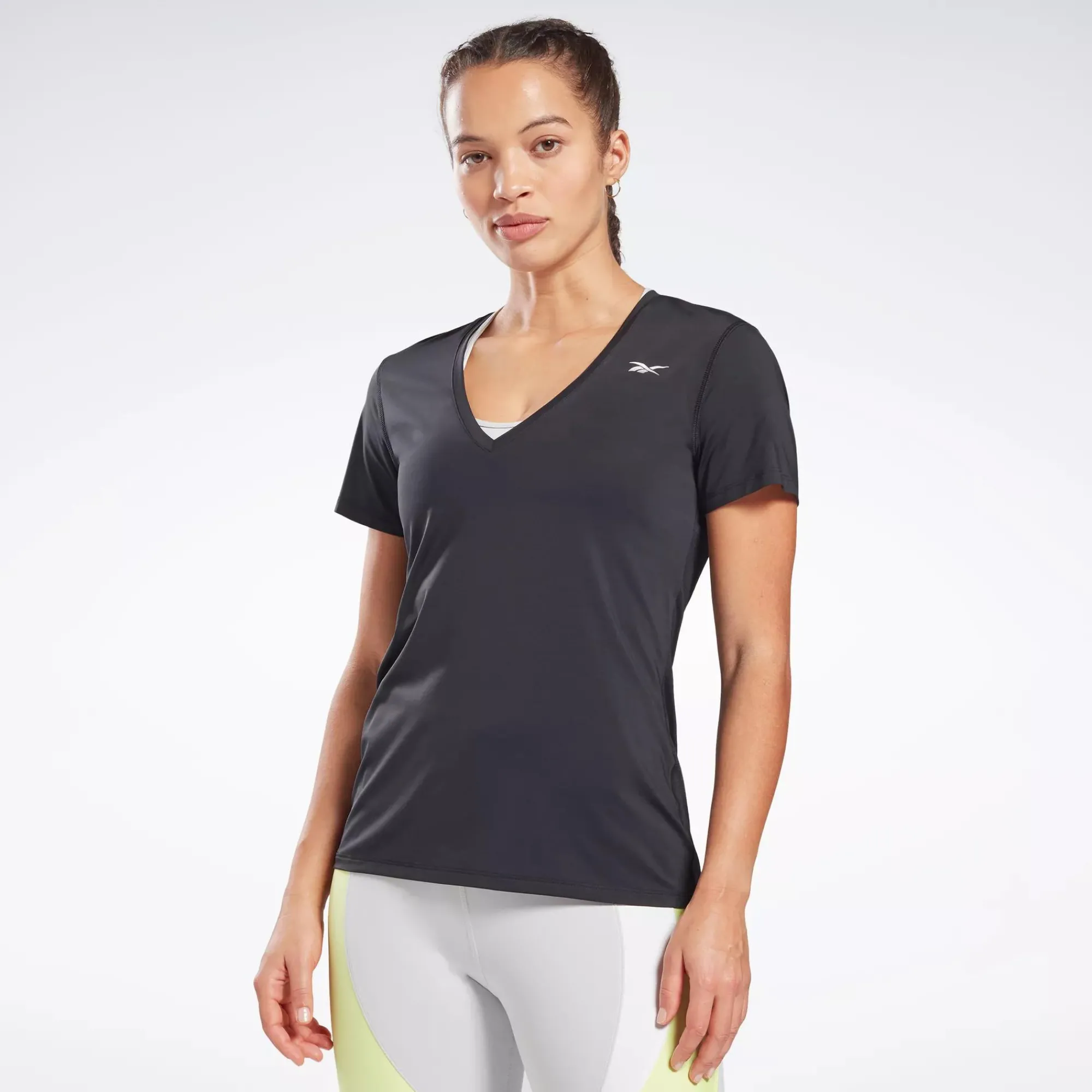 Do The One Workout That Really Makes You Sweat In This Women’S Reebok Training T-Shirt. The Full Mesh Back Lets The Air In, And Breathable Activchill Fabric Helps You Stay Cool While You Build The Heat. V-Neck And V-Back Styling Adds An Extra Touch Of Cooling Air Circulation.