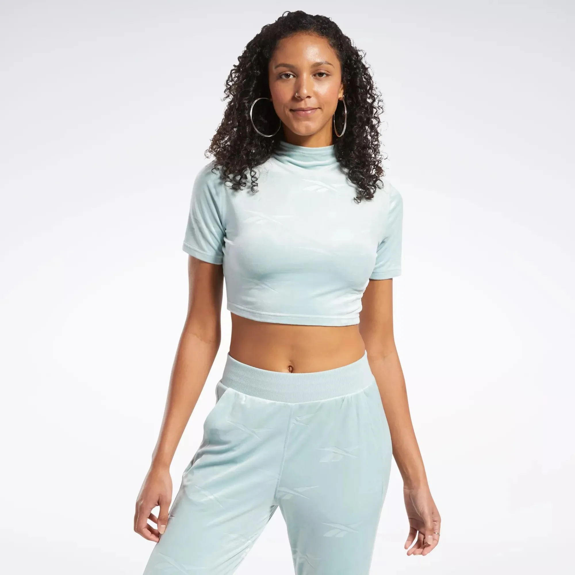 Elevate Your Sporty Style. This Women’S Fitted Crop Top Gives Your Look A Luxe Touch. Plush Velour Is Embossed With Reebok Vectors For Extra Texture And Depth.