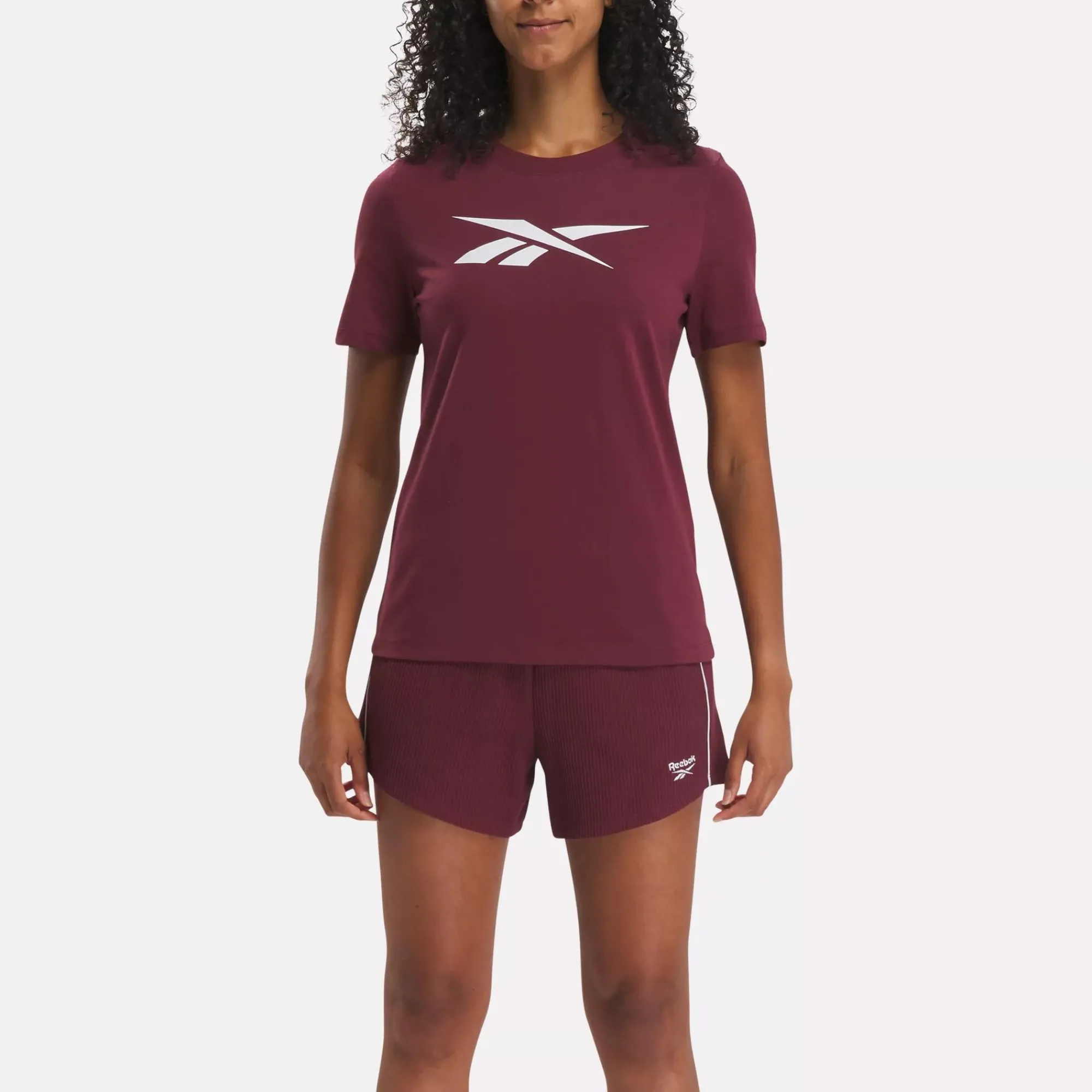 Slip On This Women’S T-Shirt And Rock Your Reebok Style. It’S Easy To Mix And Match With Pants Or Shorts And The 100% Cotton Feels Soft Against Your Skin. A Vector Logo On The Chest Finishes The Look.