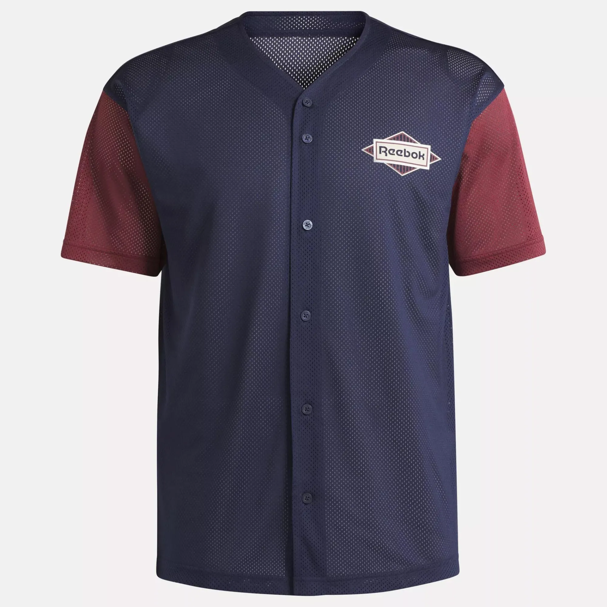 A Baseball-Inspired Reebok Jersey With A Retro Feel. It’S Made Of Airy Mesh That’S Soft And Breathable. The Colored Sleeves And Reebok Diamond Logo Caps The Look Off In Style.